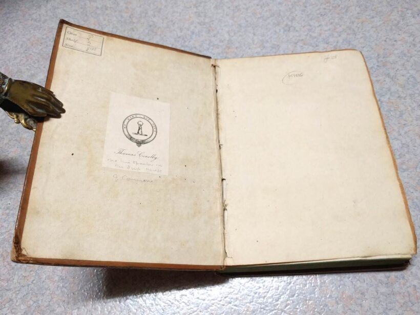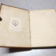 4to. (XXXV),(1 blank); 441,(1 errori),(2 blank) p. Calf 24 cm (Ref: Schweiger 2,816; Moss 2,502, quotes Nicola Francesco Haym (‘Biblioteca Italiana o sia notizia de libri rari nella lingua italiana’, Venice/Milan, 1741, p. 157): ‘La traduzione, e l’impressione sono ambi bellissime’; Ebert 17379; Graesse 3,351) (Details: Back with 5 raised bands, and a gilt red morocco shield in the second compartment. Title printed in red and black. Woodcut initials. Excellent quality paper) (Condition: Binding scuffed. Boards scratches and spotted. Corners bumped. Foot of the spine slightly damaged. Front joint partly split. Bookplate and small label on the front pastedown. Front hinge cracking, but strong. First two leaves foxed. Faint name on the title) (Note: The Roman civilian administrator Gaius Plinius Caecilius Secundus, 61-112 A.D, published 10 books of literary letters, consisting of short essays, character sketches and sensible observations. The letters paint the high society of the young Roman empire. The ninth book contains Pliny’s correspondence with the emperor Trajan. Pliny is famous for his description of the eruption of the Vesuvius on the 24th of August in 79 A.D. He was a nephew of the encyclopedist Pliny the Elder, who died, observing the eruption from afar, overcome by poisonous fumes. Pliny the Younger held under Trajanus a number of magistracies. In 111 /112 he became governor of Bithynia. From here he was in constant correspondence with the Emperor. His letters, which were conceived of as artistic productions, are more or less epistolary essays. In the late antiquity and later in the Renaissance the literary letter had a widespread influence. § Not much is known about the Canon Giovanni Antonio Tedeschi, or Johannes Antonius Tedeschi, who produced this first complete Italian translation of the correspondence of Pliny Minor. He also published a translation of the letters of Symmachus (1724). He died in 1727. We found one Giovanni Antonio Tedeschi, who was dean (archiprete) of the family Borghese, in whose palace he died in 1727, and who was buried in S. Lucia della Tinta. (Claudio De Dominicis, ‘Carlo De Dominicis, architetto del settecento romano’, Roma 2006, p. 73) This must be our Tedeschi, for he dedicated his Symmachus translation to Marcantonio Borghese. Tedeschi was a member of the Italian literary academy/society ‘Accademia degli Arcadi’ or ‘Accademia dell’Arcadia’. In ‘Prose degli Arcadi, tomo terzo’, Roma 1718, p. CV, he is described as ‘Orticolo Eleo. Il Canonico Gio. Antonio Tedeschi da Pesaro’. ‘Orticolo Eleo’ being his ‘nome arcadico’, i.e. his pen name or pseudonym. So the phrase ‘e tra gli Arcadi Orticolo Eleo’, probably means ‘and among the Arcadi his name is ‘Orticolo Eleo”. Might this pen name refer to a ‘olive grove’? A problem is that there is in this same period a namesake who was a sculptor/stonemason) (Provenance: On the title the name of ‘Harriet Taylor’. This is Harriet Taylor Upton, 1853 – 1945, who was an American political activist and author. Taylor ‘Upton is best remembered as a leading Ohio state and national figure in the struggle for women’s right to vote and as the first woman to become a vice chairman of the Republican National Committee’. Harriet Taylor married in 1884 the attorney George W. Upton. She ‘was a key organizer and the first president of the Suffrage Association of Warren. She was also a member of the National Woman Suffrage Association (NWSA) from 1890. In 1891, Upton hosted a conclave of women seeking equal rights with men, Ohio Women in Convention, in her home. (…) Harriet Upton was inducted into the Ohio Women’s Hall of Fame in 1981, in the category of Government and Military Service. In early 2010, Upton was proposed by the Ohio Historical Society as a finalist in a statewide vote for inclusion in Statuary Hall at the United States Capitol’. She probably wrote her name before 1884. (See Harriet’s lemma in Wikipedia) § On the French title in pencil: ‘J.W. Tellegen’ § On the front pastedown the bookplate of ‘Thomas Conolly’, depicting a round garter, with the motto: ‘En Dieu Est Tout’; in the center a cubit arm, the hand is grasping an annulet. Someone wrote once in pencil beneath the plate: ‘One time Speaker in the Irish House of Commons’. This is not correct. This Speaker was William Conolly, of humble descent, who was the first of his line, and in his time the wealthiest and the most powerful politician in Ireland. He died childless in 1729. Thomas Conolly, 1738-1803, was a son of his nephew William James Conolly. Thomas inherited the estate of his father William James when he was still a minor. ‘Thomas Conolly was the quintessential Irish gentleman, a keen huntsman and a fine horseman, as well as a politician and landowner. Regarded as the wealthiest commoner in the kingdom: he actually spent much of his career in debt because of large debts he inherited from his father. Conolly sat in the Irish parliament for forty years where he prided himself on his often imagined independence’. (See for this interesting family: (www)castletown.ie) (Collation: pi4, b-c4, d6 (leaf d6 verso blank); A-3H4, 3I6 (leaf 3I6 blank)) (Photographs on request)