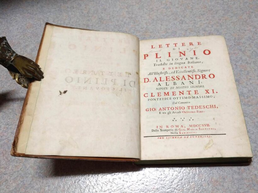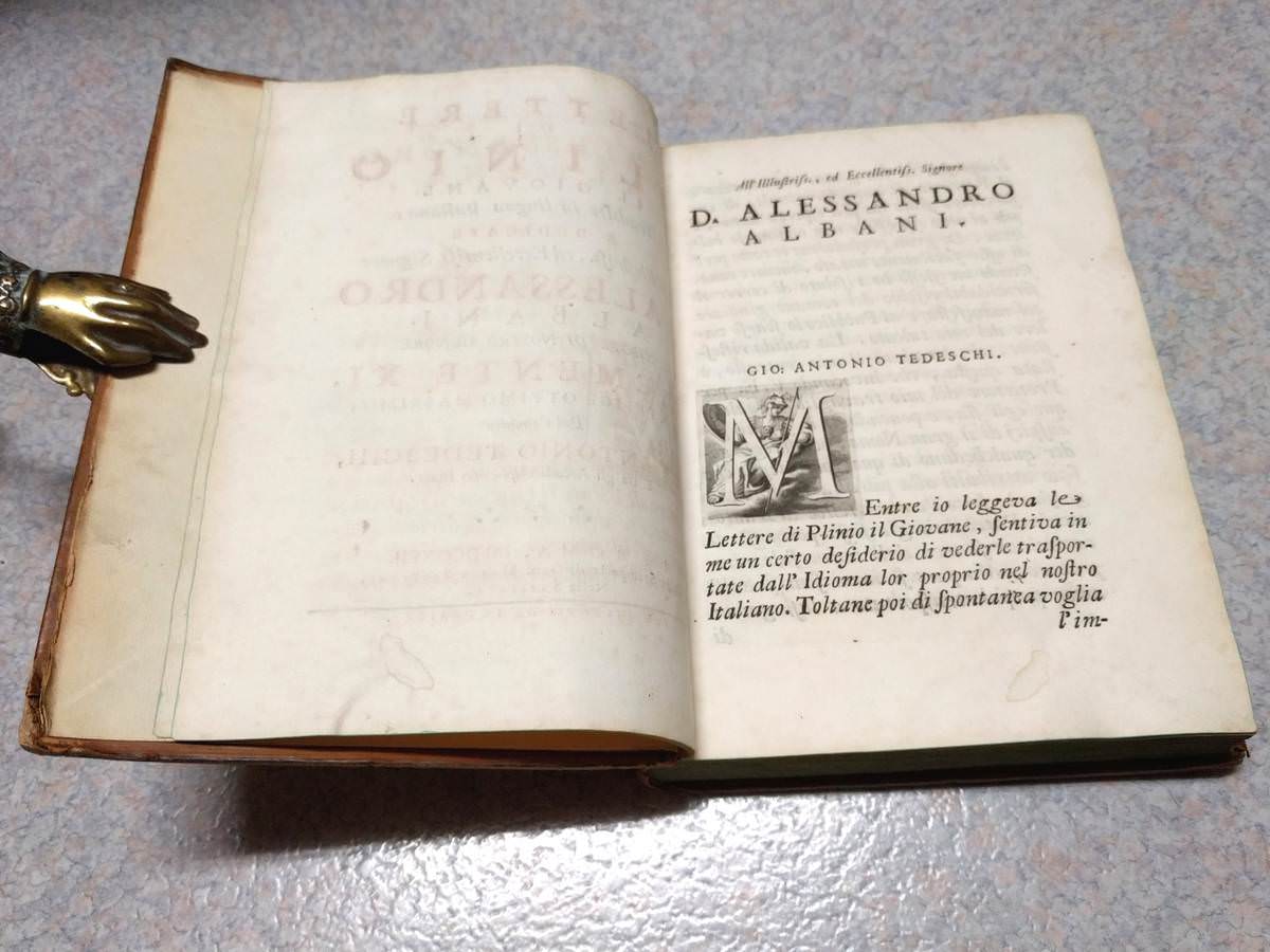 Lettere di Plinio il Giovane, tradotte in lingua Italiana e dedicate all’Illustriss., ed Eccellentiss. Signore D. Alessandro Albani, nipote di nostro Signore Clemente XI, Pontefice Ottimo Massimo, dal Canonico Gio. Antonio Tedeschi e tra gli Arcadi Orticolo Eleo.