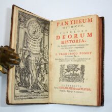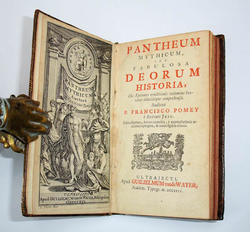 Pantheum mythicum, seu fabulosa deorum historia, hoc epitomes eruditionis volumine breviter dilucideque comprehensa. Auctore P. Francisco Pomey e Societate Jesu. Editio septima, denuo recensita, a quamplurimis erroribus repurgata, & aeneis figuris ornata.