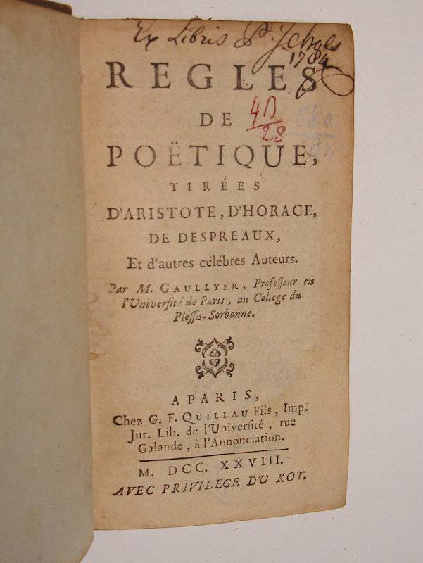 Regles de poëtique, tirées d’Aristote, d’Horace, de Despreaux et d’autres célébres Auteurs.