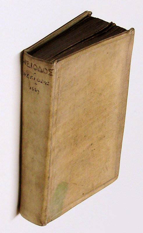 HÊSIODOU ASKRAIOU ta heuriskomena. Hesiodi Ascraei quae extant. Daniel Heinsius interpretationem infinitis locis emendavit. Introductionem in Opera & Dies, in qua Hesiodi philosophia nunc primum exponitur, item notas, addidit.
